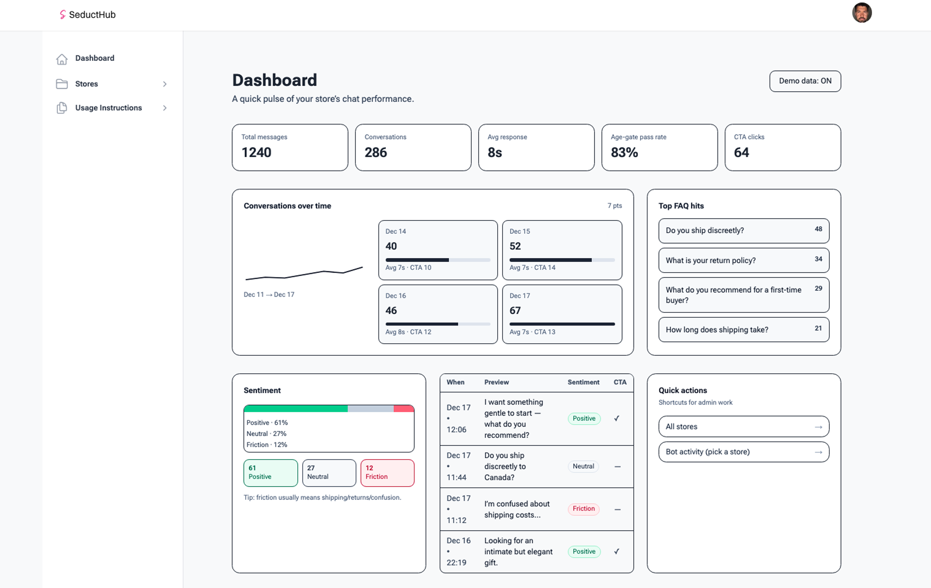 Want to see how SeductHub would handle conversations on your store? We’ll run a free audit and send a clear setup plan.