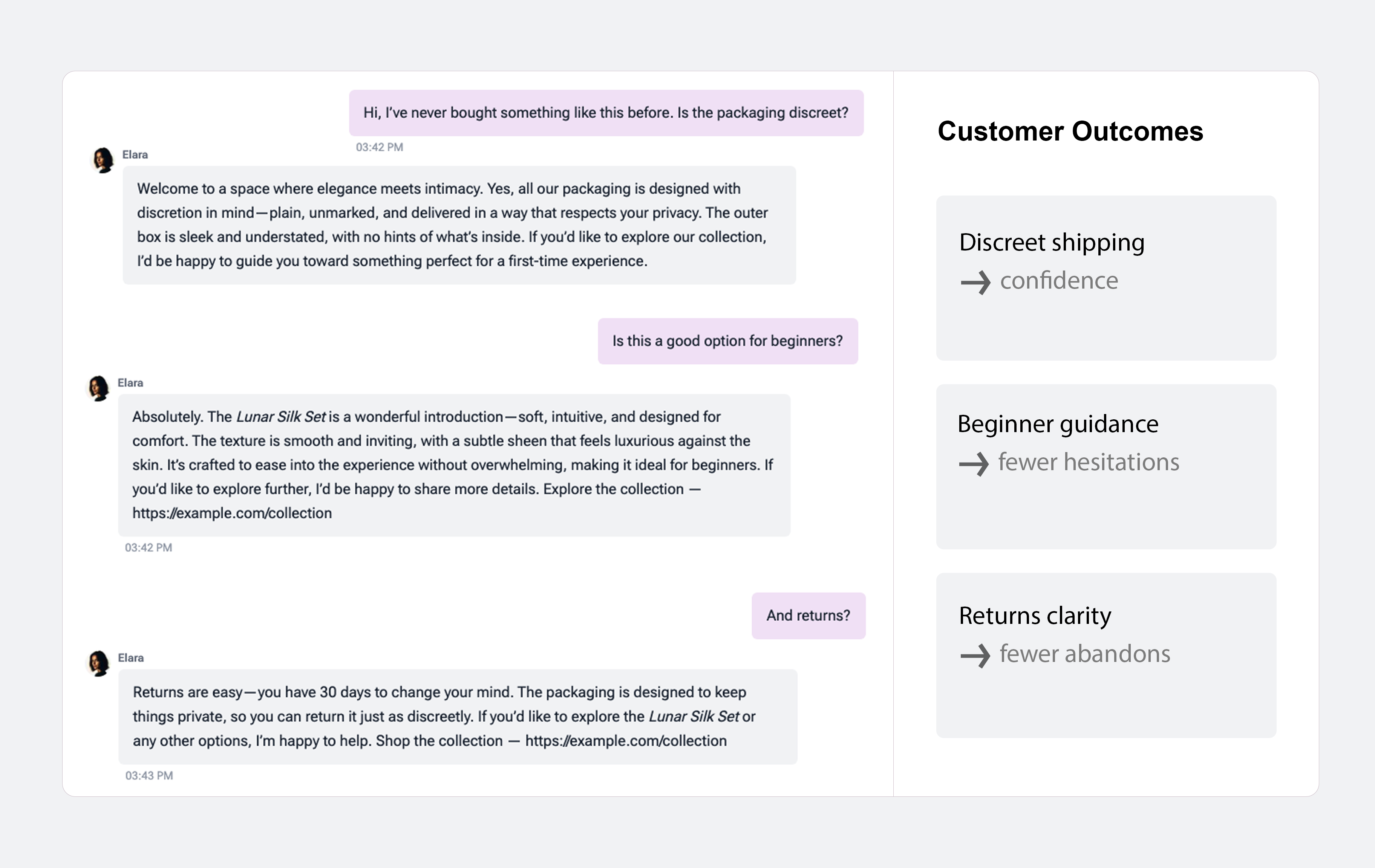Your AI concierge that listens, charms, and sells — transforming late-night curiosity into loyal customers.